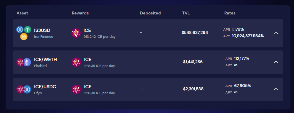 그 이유는, 지금 아이스 토큰의 등락폭이 너무나도 크다. 어디로 튈지도 모른다. 예상 자체가 무의미한 상황이다. 지금 글을 쓰는 순간에도 TVL이 순식간에 2억 달러 씩 늘어나고 있는데, 사람들이 타이탄 때 생각하고 일단 들어오는 것 같다. 게다가 스테이블이라니 더할 나위가 없다. 그러니 저 꿀같은 APR보고 가져다 스테이킹 할 사람은 무조건! 무조건! 스테이블 코인 페어에 해라. 또한 2~3일 후 거버넌스 토큰 스테이킹도 오픈을 한다고 하니 어쩌면 저런 TVL, APR이 몇 일은 더 유지될지도 모른다.