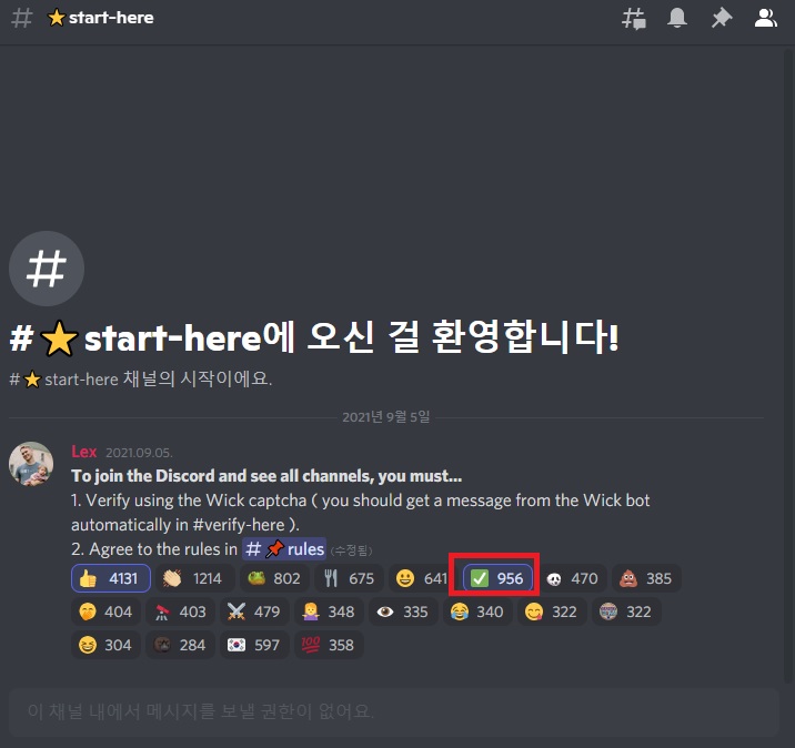 1. 디스코드(링크) 가입 후 자신이 들어갈 서버 초대 링크 구하기. 링크에 접속하면 보통 봇이 아닌 것을 인증하라며 무엇인가 누르게 하는 데, 보통 저 녹색 체크표시이다. 왼쪽에 채팅방 리스트가 나타난다면 성공적으로 인증 된 것.