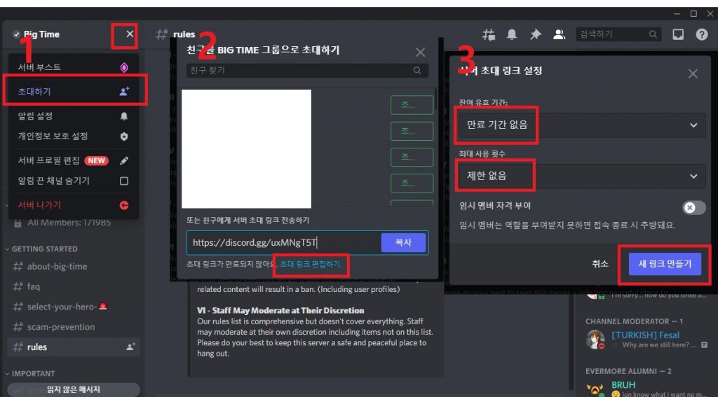 디스코드 초대 링크 생성, 채널 입장 하는 방법(초대 이벤트 참가방법)