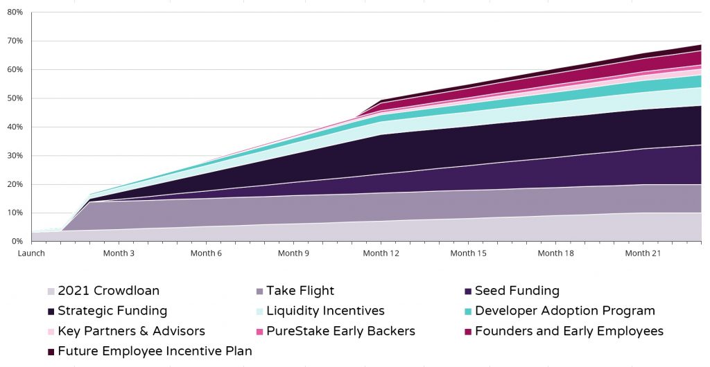 아스타 락드랍 물량이 베스팅 방식으로 바뀌면서, 초기 시총에도 변화가 생겼다. 글을 읽으려면 이 LINK 클릭. 그래서 변화된 초기 시총은 7.5%(525,000,000, 락드랍 30%의 20%(4.2억개), 크라우드론 15%의 10%(1.05억개))이다.
